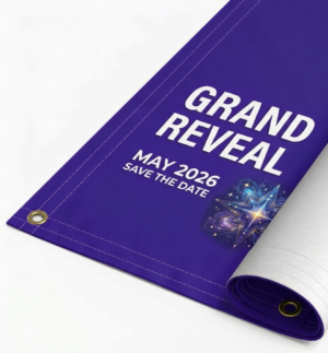 Our 13 oz. Matte Scrim Vinyl Banner is a premium, heavyweight banner designed for vibrant full-color UV printing and long-lasting performance. Waterproof, UV-resistant, and built to withstand outdoor elements, it’s perfect for events, promotions, trade shows, and large-format advertising. Standard hemming and grommets are included at no extra charge, with additional finishing options available for custom applications.