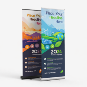 High-resolution, full-color UV printed graphics available on 8.85 oz. coated polyester fabric or 13 oz. matte vinyl. Features curl-free edges and a blockout backing to ensure vibrant, glare-free visuals under any lighting conditions.